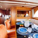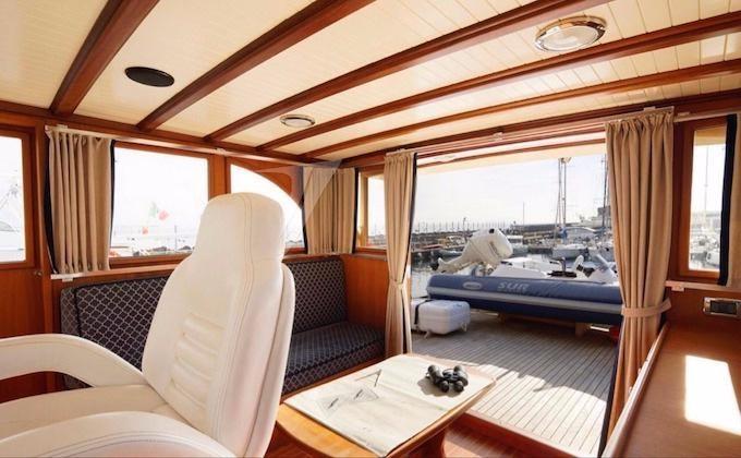 – Casco y superestructura totalmente construidos de madera maciza Esqueleto y vendaje de 40 mm en Caoba, manta sólida de teca, interior de cerezo con acabado satinado